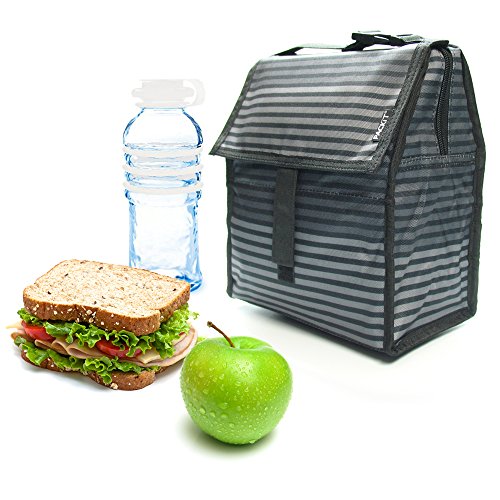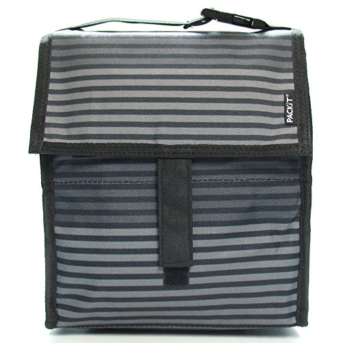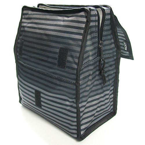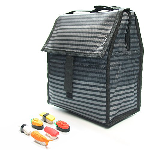 PACKIT Personal Cooler / Lunch Bag- Gray Stripe with sushi eraser