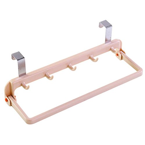 Over Cabinet Door Hooks with Folding/Swivel Dish Towel Bar Holder (Pink)