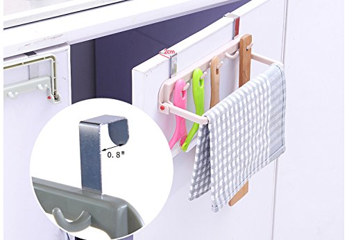 - Over Cabinet Door Hooks with Folding Dish Towel Bar Holder is perfect for anyone who needs more hanging space.Suitable for kitchen, bathroom, tool room, bedroom, office to be used for gathering small items