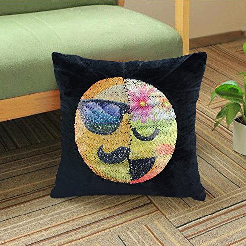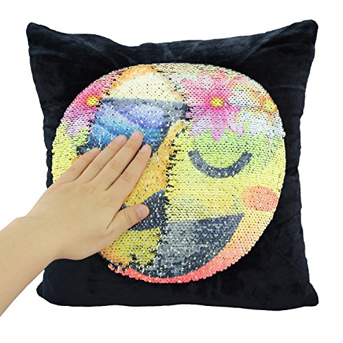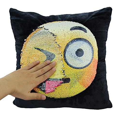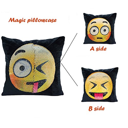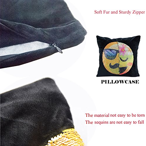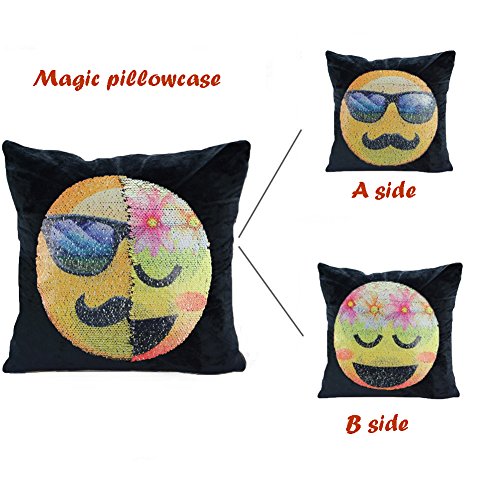 -. Feature : Material:made of high quality super velvet and sequin/Dimensions:16" x 16"/40 x 40 CM/ The fabric doesn't shed and the zipper is durable so that it is convenient to put the Insert in and not easy broken / This is a amazing magic emoji pillowcase.You can create a face out of this sequins.Use your hand slide the Pillowcase down,It will change into one emoji face;Do the same,Slide the cover up,the pillowcase will change into another emoji face / You can put it as a decorative pillowcase decorate your sofa, room, bed, can also be used as a cushion and you do not feel them when you lay on with the sequins / Perfect gifts for your kids and your families,the sequins emoji pillowcase will bring a happy time to every body. / Package Content: 1 Pcs emoji cushion cover (no inner)/Please hand wash in order to protect the sequins