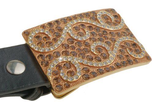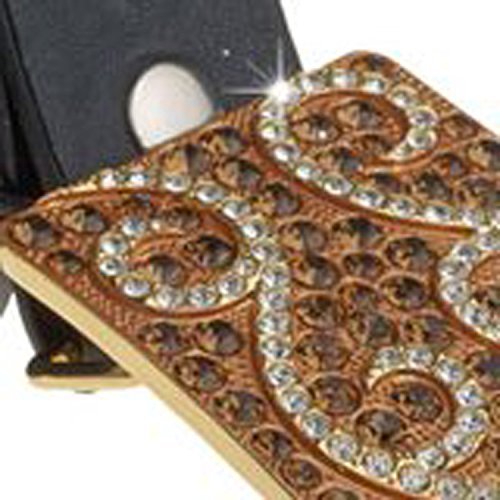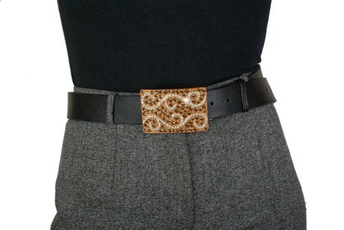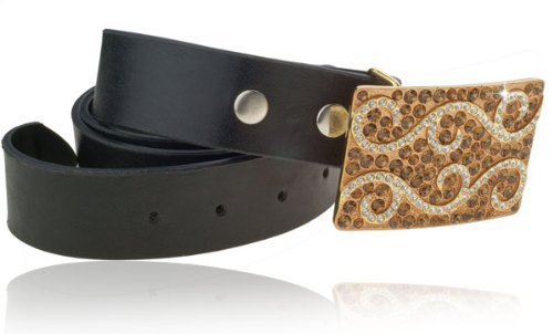Studio : Janeo Publisher : Janeo Binding : Jewelry Product Description Product Details: Stunning Designer Buckle belt for women; Swarovski Crystals Buckle, 14K Gold Plated Rectangular buckle with Swarovski crystals inlaid in shades of Topaz and Clear.