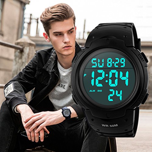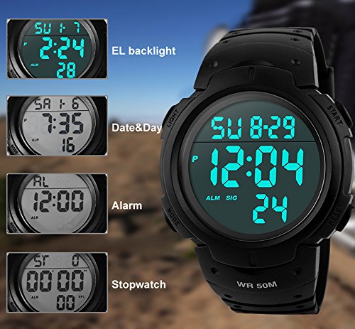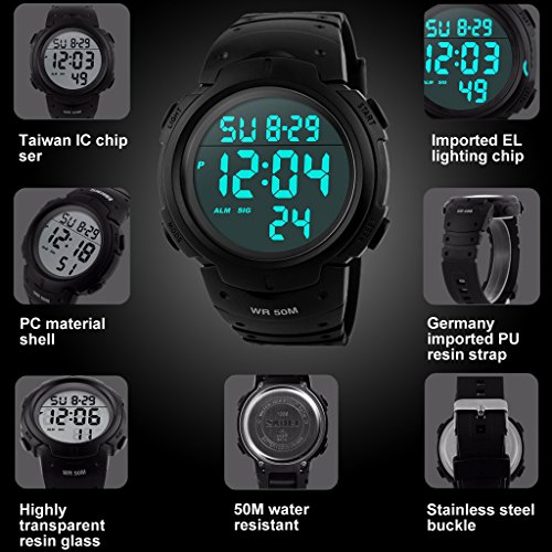 SEEWTA Mens Digital Sport Watch 50M Waterproof Outdoor Alarm Stopwatch Electronic LED Military Wrist Watches Features: - Rugged and sporty design, water resistant to 50M