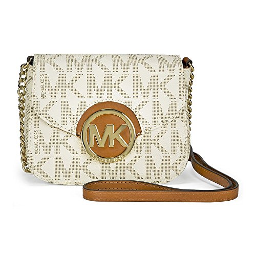 MICHAEL KORS FULTON VANILLA PVC MK SIGNATURE SMALL CROSSBODY BAG 32T4GFTC1B NEW