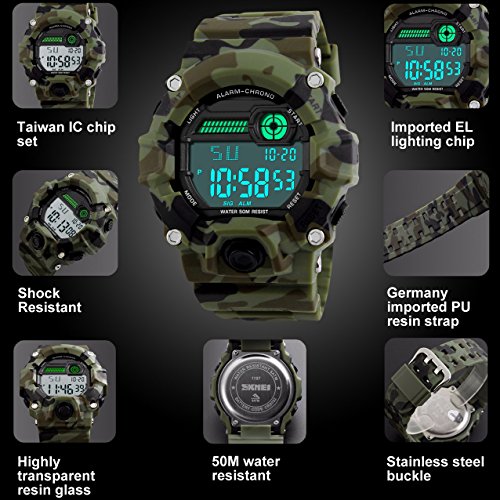 -. Title : Kids Military Digital Watch With Timer - Waterproof Sports Watch Army Alarm Wrist Watches For Boys SEEWTA