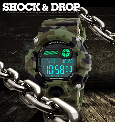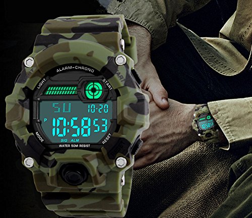 -. Feature : ✿. MULI-PURPOSE - Shock resistant,stop watch,military 24H time mode,and LED back light functions make it perfect for all kind of sport and daily use. / ✿. WATERPROOF MEN WATCH - 164FT/50M Water resistant for cleaning,shower,swimming and divings at the beach.Please DO NOT press any buttons underwater. / ✿. KIND NOTE - Please DO NOT press any buttons in the water,in case of damaging waterproof ring,please keep it away from steam and hot water. / ✿. MULTI-FUNCTIONAL - Calendar Date Week Month,Alarm,Water Resistant,LED Display,Back Light,Shock Resistant,Stop Watch. / ✿. THE PACKAGE INCLUDED - Military Sports Watch x 1,Instruction Manual x 1