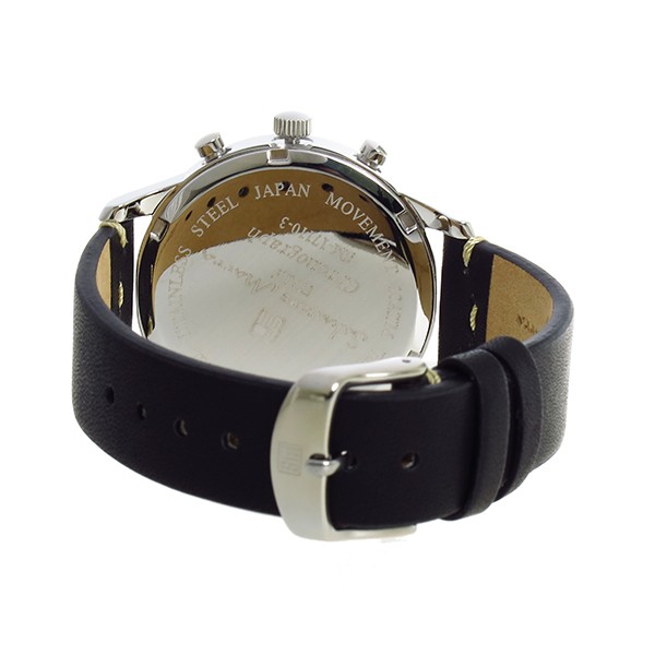 | サイズ | (約)H39×W39×D13mm(ラグ、リューズは除く)、重さ(約)49g、腕周り最大(約)18.5cm、最小(約)14.5cm | | 仕様 | ステンレス(ケース)、レザー(ベルト) クオーツ、10気圧防水、クロノグラフ、日付カレンダー、日本製ムーブメント、カラー:ブラック(文字盤)、ブラック(ベルト) 1年間 | | 付属品 | BOX、保証書、取扱説明書 |