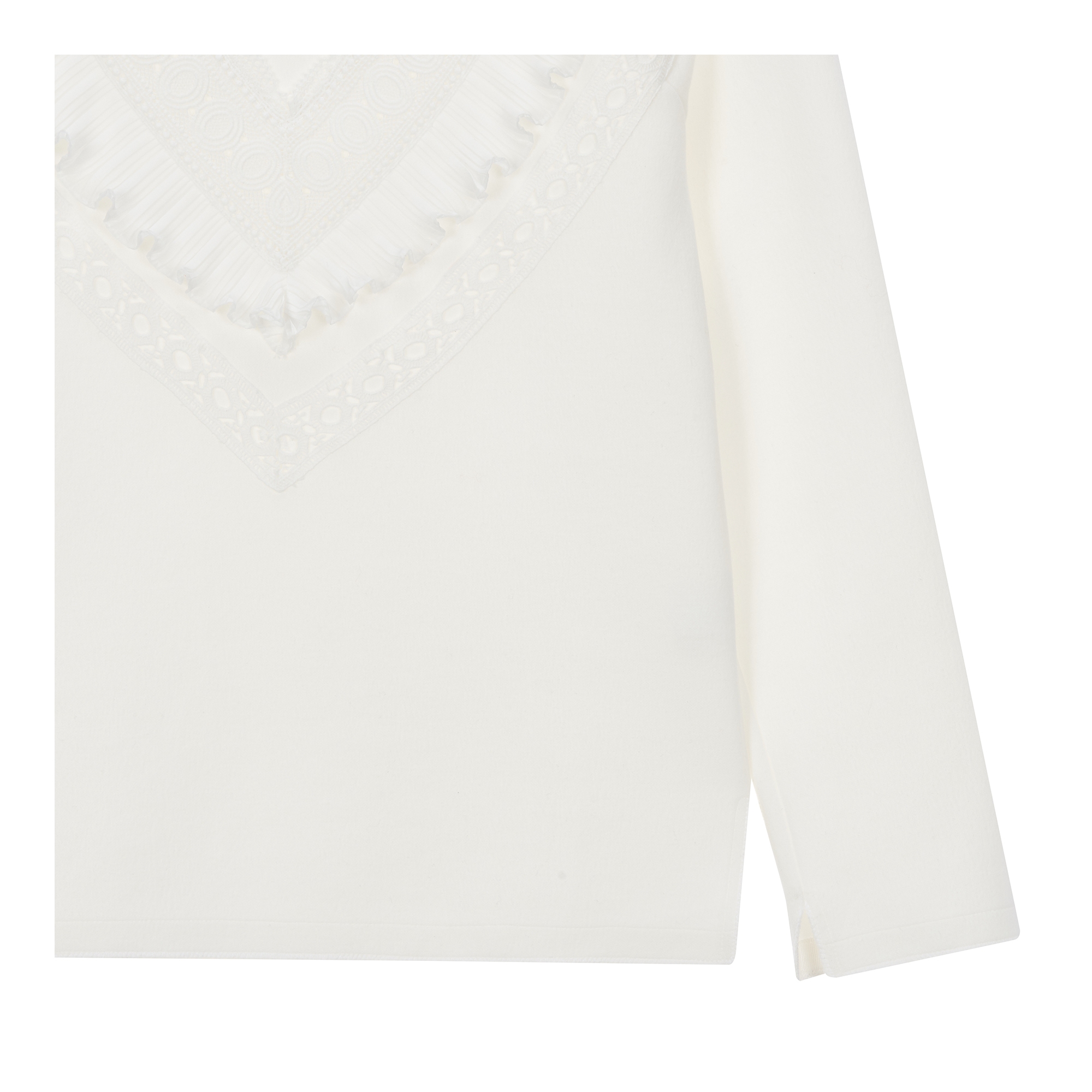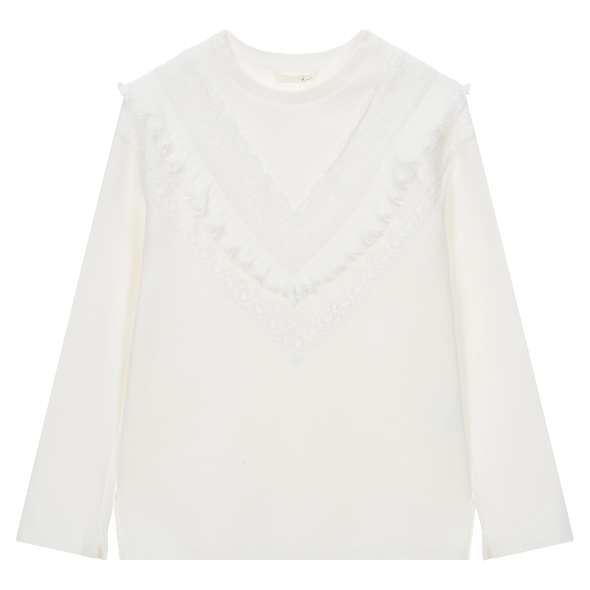 * 컬렉션 : 2018 Spring/Summer* 디자인 포인트 : - 프론트에 V 라인 프릴장식이 돋보이는 페미닌한 무드의 티셔츠- 레이스 장식 디테일로 포인트를 더한 트렌디한 디자인- 라운드넥 디테일과 베이직한 핏을 가진 포멀한 아이템* 스타일링 추천 : 다양한 워싱의 스키니진 혹은 부츠컷 팬츠와 트렌디한 스타일링을 연출 할 수 있음 *