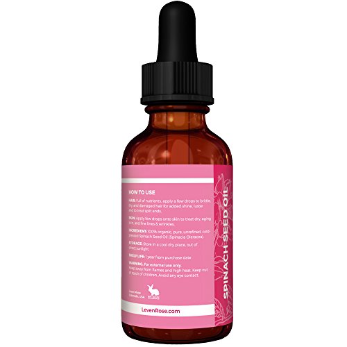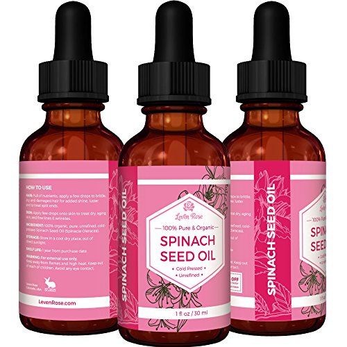 -. Binding : Misc. -. Brand : Leven Rose -. EAN : 4883943105621 -. Feature : JUST ONE INGREDIENT - 100% Pure Spinach Seed Oil, natural, unrefined, cold-pressed. This oil, rich in vitamins A and C, which together restore and repair damaged skin + bring about a beautiful glow and clear complexion. STORAGE: Store in a cool dry place, out of direct sunlight. SHELF LIFE: 2 years from purchase date. / THERAPEUTIC GRADE - High in Vitamin B, Spinach Seed Oil is an excellent protector from strong and damaging UV rays. Just pair with natural sunscreen for added protection. This oil also helps repair damaged skin, sun spots, and fine lines and wrinkles from aging. / INCREASES HAIR GROWTH - rich in iron, potassium, essential fatty acids, and loaded with vitamins, this oil helps strengthen hair, promote hair growth, and prevent hair loss. Simply massage into scalp to stimulate hair follicles and see the best response. / MADE IN THE USA - Paraben free, alcohol free, anti animal testing, non GMO, fragrance free, and cruelty free. Kosher, vegetarian and vegan friendly. Free of added fragrances. Cold pressed to keep the enzyme essentials active within the oil extract. For external use only. Keep away from flames and high heat. Keep out of reach of children. / MONEY BACK GUARANTEE - Dark amber glass bottle & glass stopper extends the shelf life as oils are light sensitive and must be stored in dark amber bottles to protect them from oxidation. (Pure natural oils that are not packaged in dark bottles will lose potency and become ineffective.) Leven Rose stands behind their 100% Satisfaction Guarantee - love it or get your money back! -. IsAdultProduct : 0 -. Label : Leven Rose -. Manufacturer : Leven Rose -. MPN : LR -. PackageQuantity : 1 -. PartNumber : LR -. ProductGroup : Beauty -. ProductTypeName : BEAUTY -. Publisher : Leven Rose -. Studio : Leven Rose -. Title : #1 TRUSTED Leven Rose Spinach Seed Oil - 100% Organic, Natural for Face, Hands, Scars, and Breakouts - 1 oz