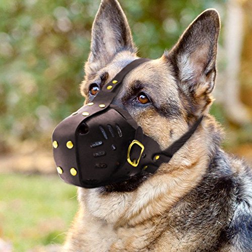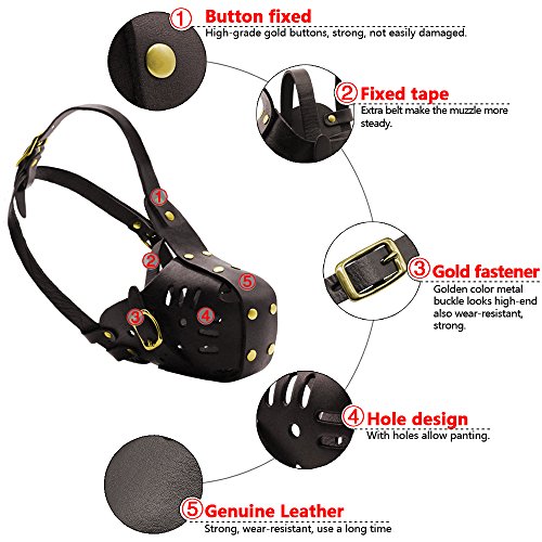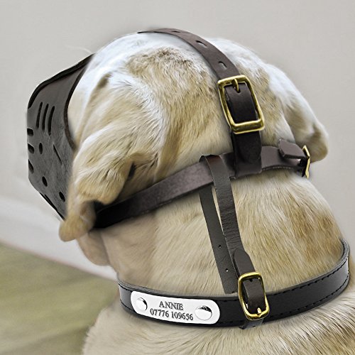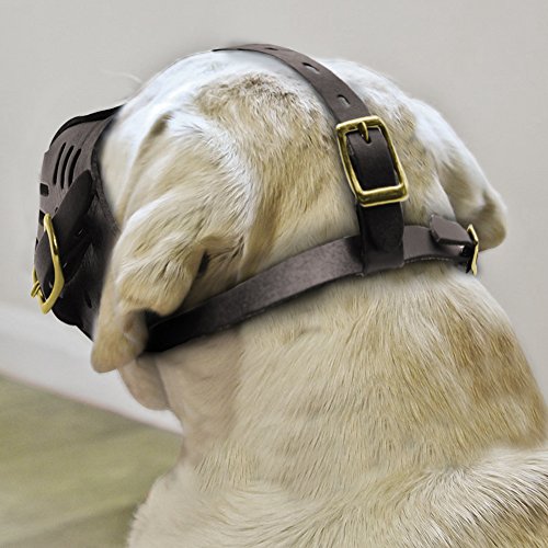 We are Happier Pet with brand PET ARTISTTM a professional pet products supplier with more than 8 years pet products supply experience; Size: length: 3.9' (10cm), circumference 12.2-14' (31-36cm) Please measure your dog and check if the muzzle size fit your dog. Features of this product 1). The professional lightweight genuine leather muzzle gives all-around protection; 2). It allows unrestricted panting, but prevent eating, in case of dog getting stomach problems; 3). Three strong straps connect the muzzle to dog head, ensure the muzzle always remain securely in one place, and please tighten up it during using; 4). Comparing to a metal basket design, this muzzle feels softer and can be pressed and save space during storage and taking out; 5). Adjusting the strap cross the muzzle can better make the muzzle fit different dog snout, also the strap can be took down and used for attaching the muzzle to your dog`s regular collar to make the muzzle more securely. Fit for Labrador Retriever/German Shepherd/Golden Retriever and same size dogs (Due to dog snout/mouth size difference, the above breeds just for your reference, welcome to share reviews to help other buyers to judge if the muzzle suitable) Two steps to measure your dog: 1). Snout size: measure from the very end of your dogs nose along the bridge of their nose to just below the point between their eyes. It is best to imagine where the muzzle would sit when they would be wearing it. It is best to add approx a quarter of 1 inch as you do not want the muzzle to be pressing right up against your dogs nose. 2). Around the widest part to take the circumference of your dogs nose. Again once you have this measurement it is a good rule of thumb to add another half an inch, to allow for movement.