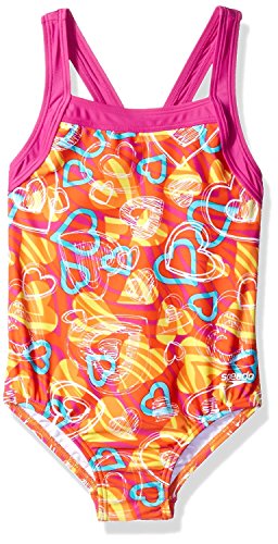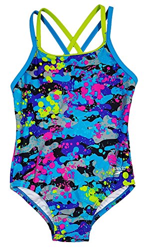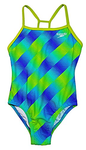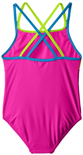 Speedo equals better fit, performance, quality, and innovation The Girl's 7-16 Crossback Splice One Piece is a popular athletic styled basic that is great for young swim team enthusiasts or for any water activity. The suit features trademarked Xtra Life Lycra which lasts 5 to 10 times longer than traditional lycra. So no bag and sag, and it looks like new for longer. With splice trim colorblock details, it also offers our new "No Wedgie Worries" technology, which adds a thin silicone gripper at the inner edge of the bottom to keep the suit in place during activities. Look and feel your best in or out of the water, while you play, train or win in speedo, the choice of championsFeature