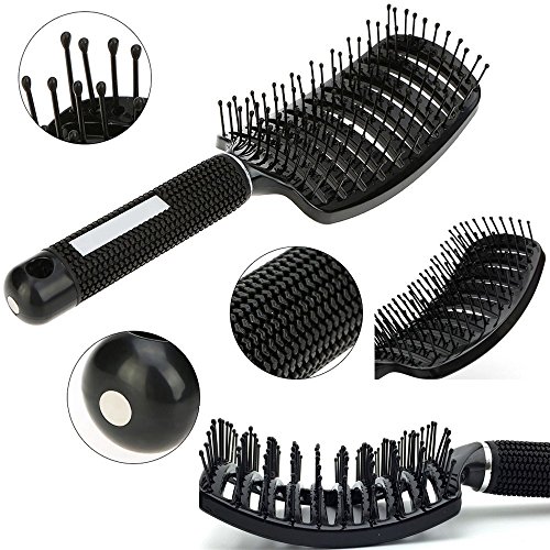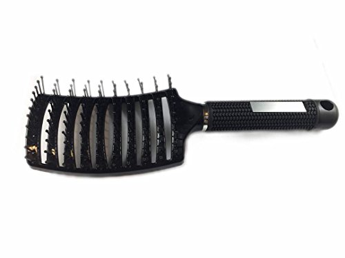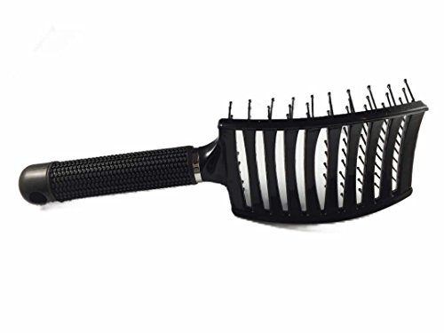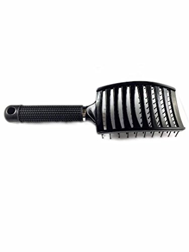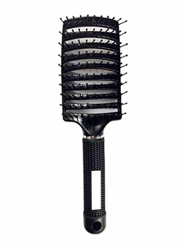 Curved and Vented Detangling Black Hair Brush for Any type of Hair, Thick, Thin, Long, Curly. Massage and Fast Dry with Plastic Bristles. Unisex