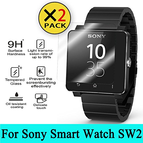 Sony SW2 SmartWatch 2 Glass Screen Protector, [2PACK] AnoKe(0.3mm 9H 2.5D) Best Tempered Glass Screen Protector Film Shield Guard For Sony SW2 SmartWatch 2 Glass 2PACK