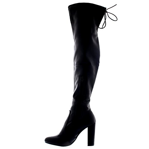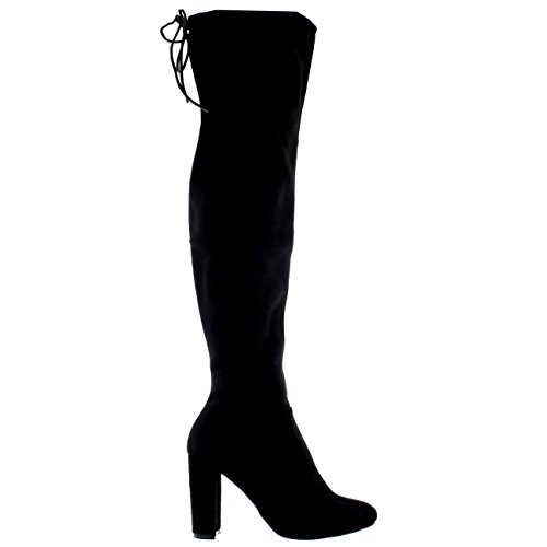 Womens Wide Fit Stretch Long Thigh High Winter Riding Block Heel Boots