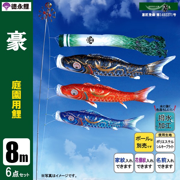 | 豪鯉 庭園用大型鯉のぼり ポール別売り | 7m鯉3匹 7m鯉4匹 7m鯉5匹 | 8m鯉3匹 8m鯉4匹 8m鯉5匹 | ||