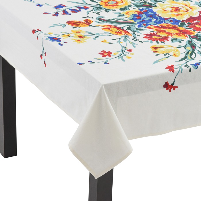 화려함으로 컬러풀한 꽃무늬를 스크린 프린트로 섬세하게 표현한 디자인 테이블 크로스입니다.