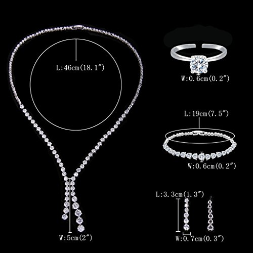 -. Feature : ♣ SIZE♣ : Length: 46cm(18.1"); Pendant size: 5cm(2")by17cm(6.7"); Earrings Size: 0.7cm(0.3")by3.3cm(1.3"); Bracelets Length: 19cm(7.5"); Bracelets Width: 0.6cm(0.2"); Ring: adjustable. Total Weight: 47.2g. / ♣ This is a gorgeous jewelry set with sparkling cubic zirconia. Simple but classic design make you eye-cathing. Very siutable for wedding, cocktail or banquet. / ♣Very good cut and advanced inlay technology ensure the high refractive index of cubic zirconia, make it sparkling and shining all the time. / ♣ Perfect Gift Choice ♣: we strive to be every woman's lifetime companion. So every Fanze Jewelry has a timeless design with a balance between tradition and innovation. No matter what age, it is absolutely a thoughtful gift for wife, girlfriend, mom, daughter, best friend or any your loved ones. / ♣ Top Service ♣: make every customer enjoy the best shopping experience is our service principle. Gift-wrap available➔Fast delivery➔ High Quality Guarantee➔Prompt Email Service. Successful realization of worry-free shopping!