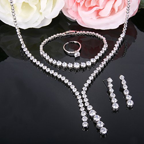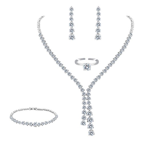 -. Title : FANZE Women's All Prong Cubic Zirconia Wedding Pendant Necklace Dangle Earrings Tennis Bracelets Adjustable Ring 4 Pieces Set