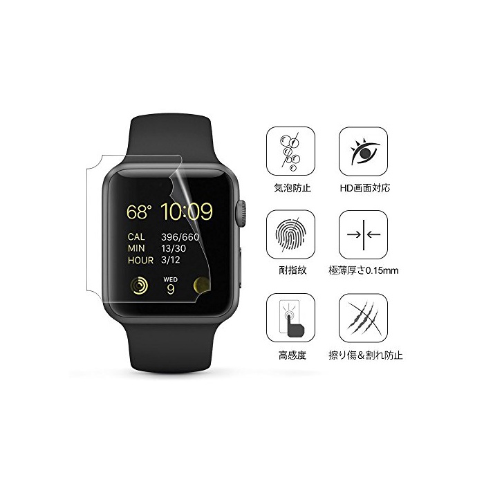 원본상품명: JTLife Apple Watch Series3 液晶保護フィルム 化ガラスフィルム 9H硬度 Apple Watch Series 3 2 1通用 HD 高保護シト 衝吸 日本旭硝子素