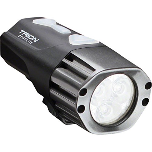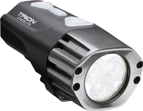 Studio : Cygolite Publisher : Cygolite Binding : Sports Product Description Cygolite's brightest all-in-one bicycle light, the Trion 1300 combines the powerful brightness of 2nd generation Cree XM-L LEDs in an integrated battery lighting system small enough to, fit in the palm of your hand. If your ride goes longer than expected, the Trion 1300 is also compatible with Cygolite's 7.6 volt external batteries for extended run times. Internal battery convenience and external battery compatibility make the Trion the perfect choice for avid road and mountain bikers seeking the ultimate all-in-one. 0