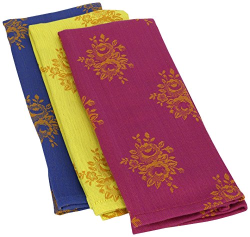 Mahogany Jacquard Kitchen Towel, 18 by 28-Inch, Country Rose, Set of 3