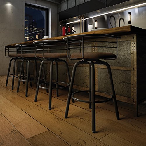 -. Feature : Dimensions: 21.5W x 19.75D x 33.25H in. / Steel frame and back with upholstered seat / Choose from available finish options / Modern low back stool with swivel seat / For residential use