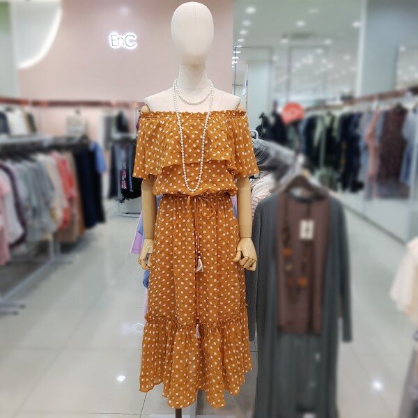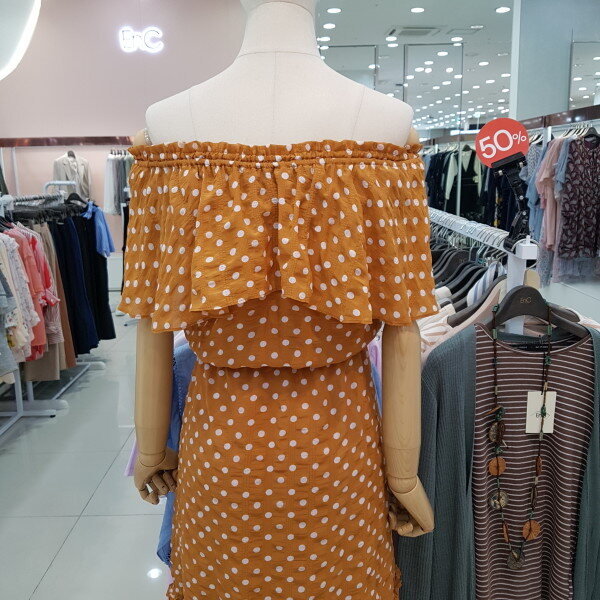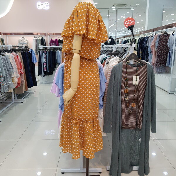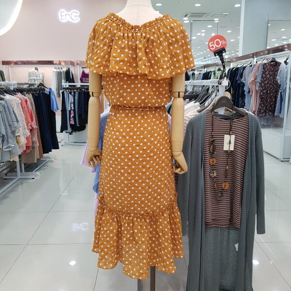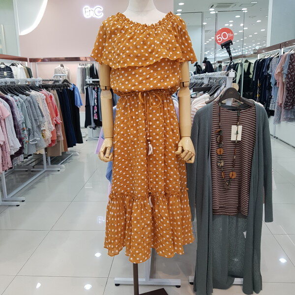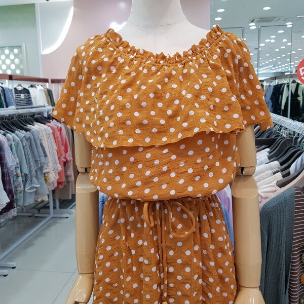 고급스러워보이는 카멜 바탕에 화이트 도드패턴이 유행없이 입으실수 있게나왔으며 비치워어로 오프숄더 연출도 가능한 아이템