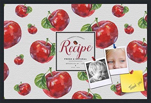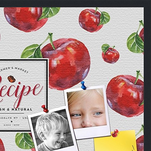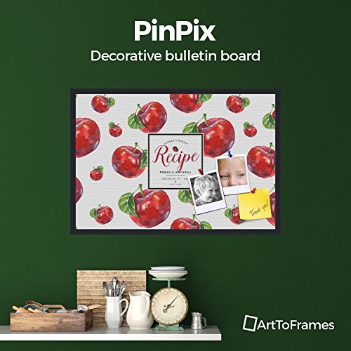 PinPix decorative pin cork bulletin board made from canvas, Recipe Board with Red Apples 36x24 Inches (Completed Size) and framed in Satin Black (PinPix-Group-36)