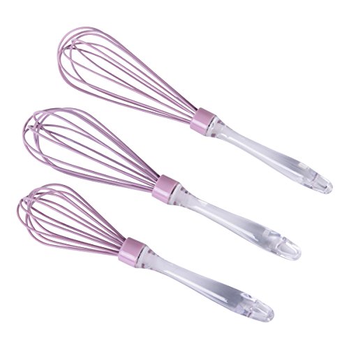 Features: - Food grade, 100% BPA free, FDA approved, Eco-friendly. And it is non-stick, you do not worry about making a mess in your kitchen and just enjoy the kitchen fun with your families. - Non-stick and non-rusty. The surface of wire is platinum silicone, and you don't worried about sticking the foods or get rusty. - 3 size whiskers meet your different needs to beat eggs,stir batters, whip cream and so on. - Each has 6 wires save your power. Other suppliers' whisker may just have 5 wires, but we have 6, and it means our whisker will help you save more strength during the beating. - It is a good tool for your kitchen. You can used it for beating eggs, stirring batter, whipping cream, etc. And the crystal handles is comfortable to hold and gives a beautiful appearance. Easy to Clean: It can be washed by hands or in dishwasher. And put it in dry and clean places, out of direct sunlight. Package includes: 1 x 10 inch silicone whisk 1 x 11 inch silicone whisk 1 x 12 inch silicone whisk 0 |