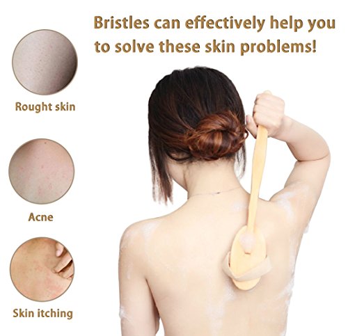 LONG-HANDLE:With 16'' DETACHABLE Ergonomically designed handle for easy gripping, allows you to scrub with just the brush head or you can reach the middle of your back, the backs of your legs and other tricky spots with this high quality bamboo body brush.