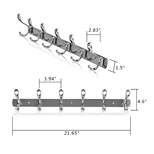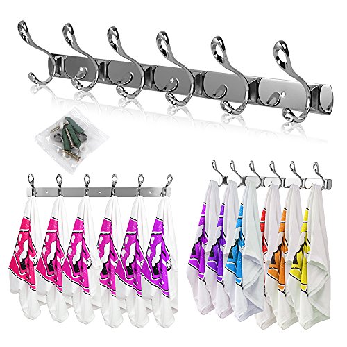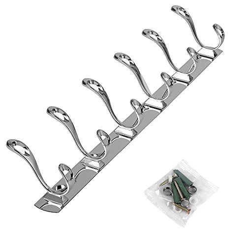 Ogori Wall Mount Entryway Storage Rack for Jackets, Coats, Hats, Scarves Wall Mount Hook Hanger Towel Rack - 6 Hooks, Matte Black/Chrome