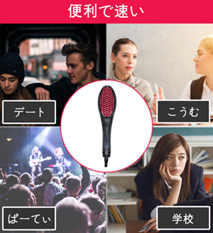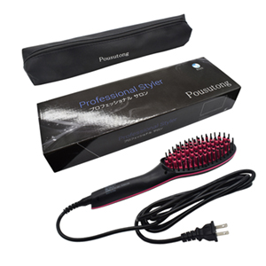 ヘアストレート アイロン ヘアブラシ、収納ポーチ付き