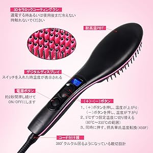 ブラシ部分は、頭の形に沿っており、弾力性に優れており、スムーズにブラッシングができます。 ブラシ型のヘアアイロン、髪をとかすだけで、スタイリングできます。