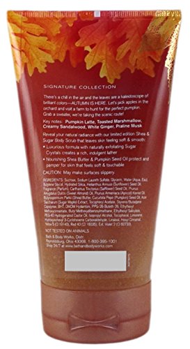 -. Feature : Bath & Body Works / Marshmallow Pumpkin Latte scent is pumpkin latte, toasted marshmallow, creamy sandalwood, white ginger, praline musk / 8 oz shea & sugar body scrub / Limited Edition fall autumn 2015 / Massage onto skin with warm water & rinse.