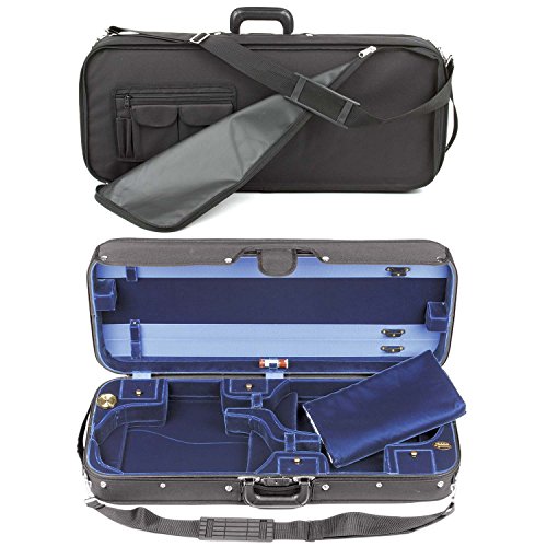 -. Feature : For Two 4/4 Violins / Instrument Suspension | Blue Velvet Interior | Five-Ply, Seamless, Poplar Veneer Construction | Screw-Attached Black Canvas Cover With Music Pocket / Hygrometer | Four Locking Bow Spinners | 4 Small Accessory Pockets | String Tube | Instrument Blanket / Velcro Neck-Restraints | Tail-Block Sponges | Extra D-Ring For Backpack Option | Shoulder Strap Included | Leather Handle / Practical and professional, Bobelock cases are America's best instrument case value...and this case proves it!