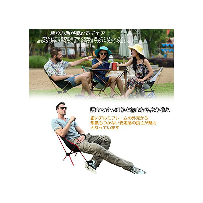 ▶【안정도 기분이 상쾌하다】:강도의 높은 경량 알루미늄 합금 프레임을 사용 하고 있기 때문에,내하중은 120kg를 클리어해 있습니다. 800D폴리에스텔의 안정도 기분,좌면은 배면 메쉬 사양으로 발군의 환기성에,찌기 어려워 쾌적하게 앉을 수 있습니다.매우 휴대성보다 뛰어나라 면서(도) 좌면원단을 프레임에 매어 다는 형태와 하는 것으로,좌면씨트가 넓어 깊다,해먹(hammock)와 같이 몸으로 피트 하고, ## 거나와 감싸안아지는 안정도 기분을 실현 한 울트라 라이트 체어입니다.
