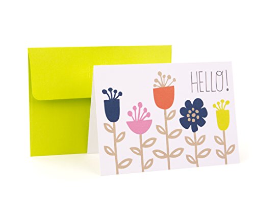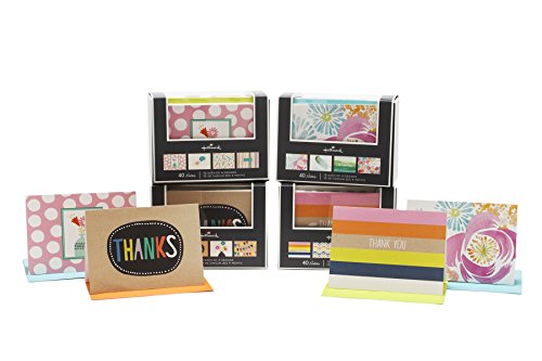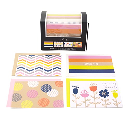 Studio : Hallmark Marketing Company, LLC (Office) Publisher : Hallmark Marketing Company, LLC (Office) Binding : Office Product Product Description Perfect for writing a note of thanks, encouragement, or other special message, this notecard set features four colorful designs: zig-zag stripes, textured dots, bold stripes with "Thank You" lettering, and flowers with "Hello" messaging. The notecards measure 5.5 by 4 inches. Included are 40 cards and 40 envelopes with four different designs. Hallmark was founded in 1910 when 18-year-old J.C. Hall arrived in Kansas City, Missouri, with a couple of shoeboxes of postcards under his arm and the American dream in his heart. Hallmark products are sold online and in nearly 40,000 retail stores across the globe and people continue to recognize the iconic Hallmark brand as "the very best." 0