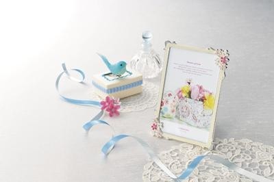 | 品よくあしらわれた小さなお花たちに心がなごむフォトフレームです。 |