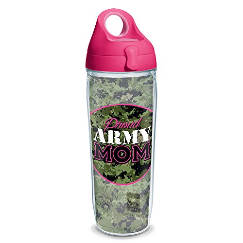 Tervis Proud Army Mom Wrap Water Bottle with Pink Wb Lid, 24oz, Clear