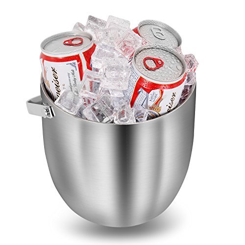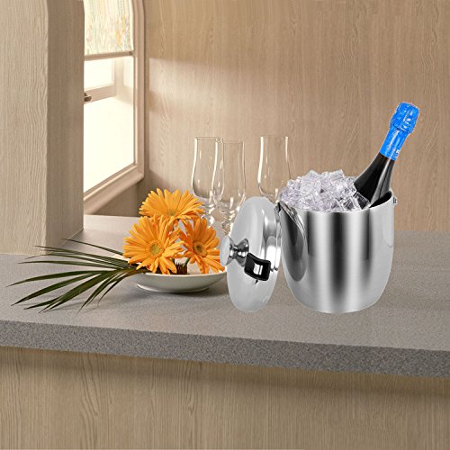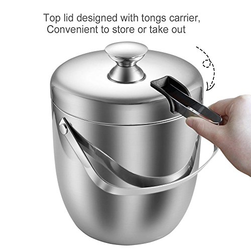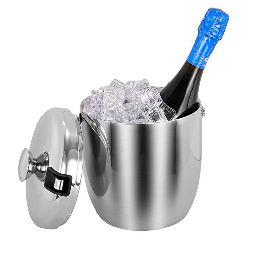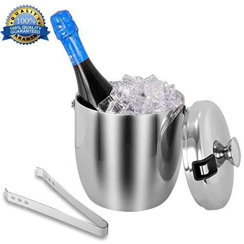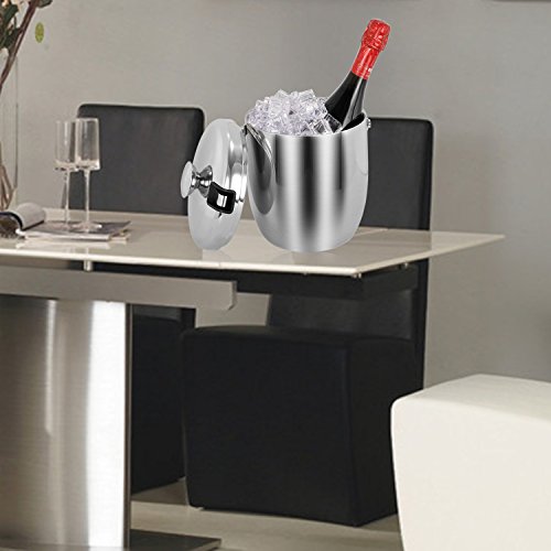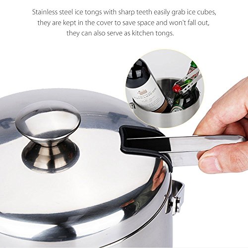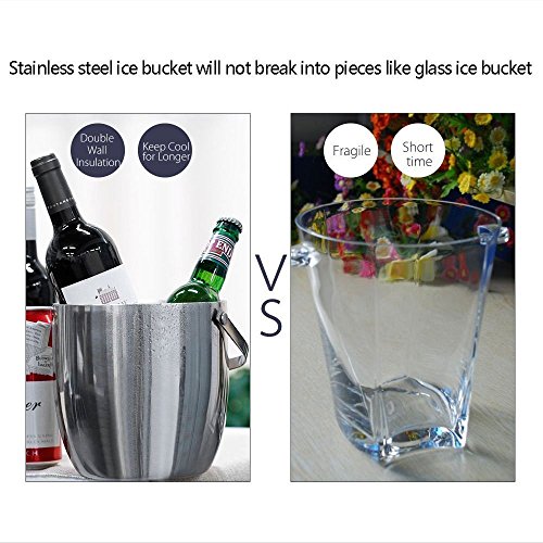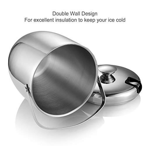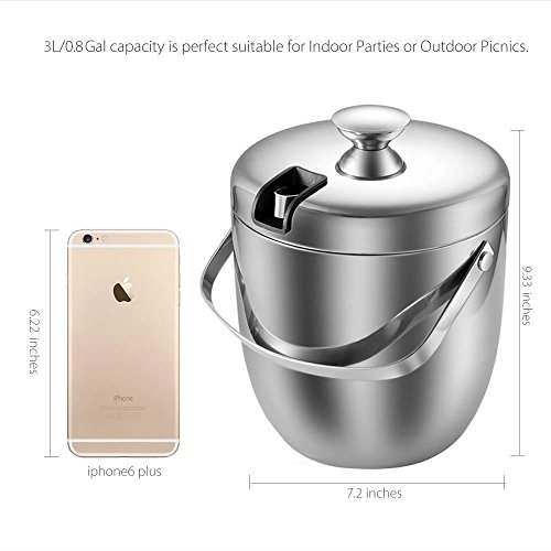 Features: - Products designed with our values of quality, simplicity, affordability and longevity.? - Make of strong, durable and food grade stainless steel in contemporary simple, yet elegance styles.? - Both classic and contemporary, this ice bucket makes a bold statement on top of a bar, turning any occasion into a tasteful affair.? - Refresh drinks and impress guests when entertaining with this distinguished design.? - Presenting a solid look with polished sheen. Both decorative and functional handles at the sides match the finial on the lid? - Featuring the stylish lines of understated rings that encircle the base and cover.? - A gift for house decor, housewarming,great wedding or holiday for contemporary house and party.? Product Specifications:? Size:7.3x6.9x9.1inch? Capacity:3L/0.8Gallon? Color:Silver? Design: Double Wall? Features: Finger Prints Proof? Material: Stainless Steel? Package Included:? Ice Bucket x 1pcs Tongs x 1pcs Wine Ice Cubes x 4pcs Warranty: 30 days money-back? 60 months warranty Note: If you have any quality problem or confusion. Please contact us directly. We would try to help you solve the problem, refund resend or others. Please kindly give us a chance to serve you firstly. SVVSS would provide you 24-hour email support lifetime customer support. 0 |
