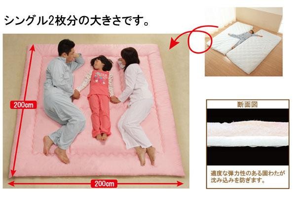 | 固わた入りで、しっかりとした寝心地。シングル2枚分の大きさなので、2枚分を一度にサッと敷けます。 |