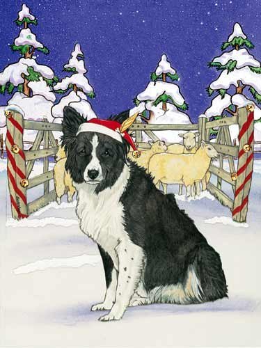 Border Collie Christmas Cards Santa's Cap : 10 Holiday Cards with Red Envelopes - ADORABLE!