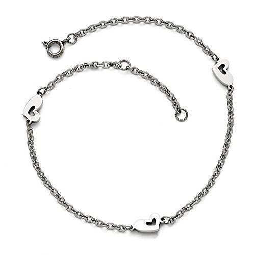 Stainless Steel Polished Hearts with 1in extension Anklet 9"