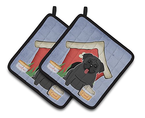 Caroline's Treasures Dog House Collection Pug black Pair of Pot Holders BB2760PTHD, 7.5HX7.5W, Multicolor