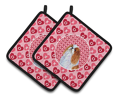 Caroline's Treasures English Toy Spaniel Hearts Love & Valentine's Day Portrait Pair of Pot Holders SS4507PTHD, 7.5HX7.5W, Multicolor