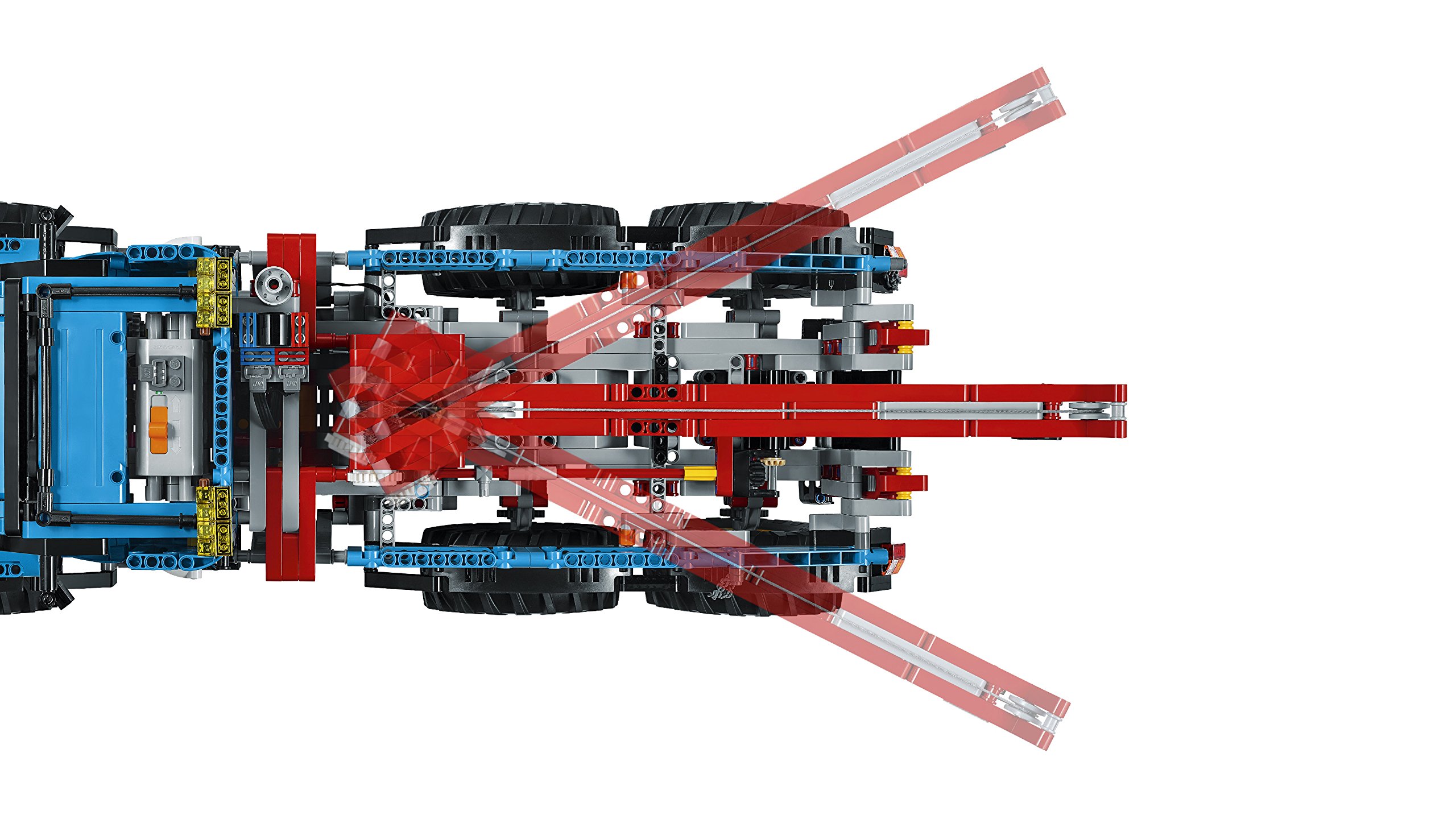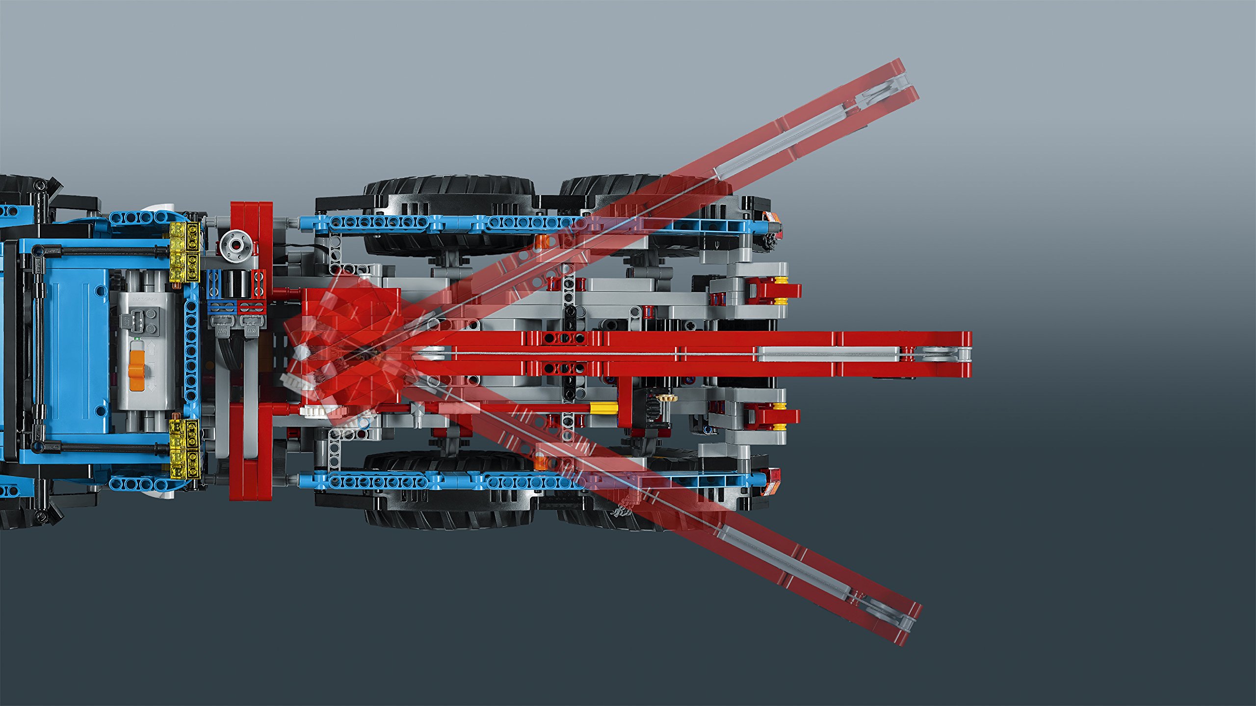 Blue, red, yellow, black color palette is brilliant, stuck to detail 2-in-1 Lego ® technique model.
