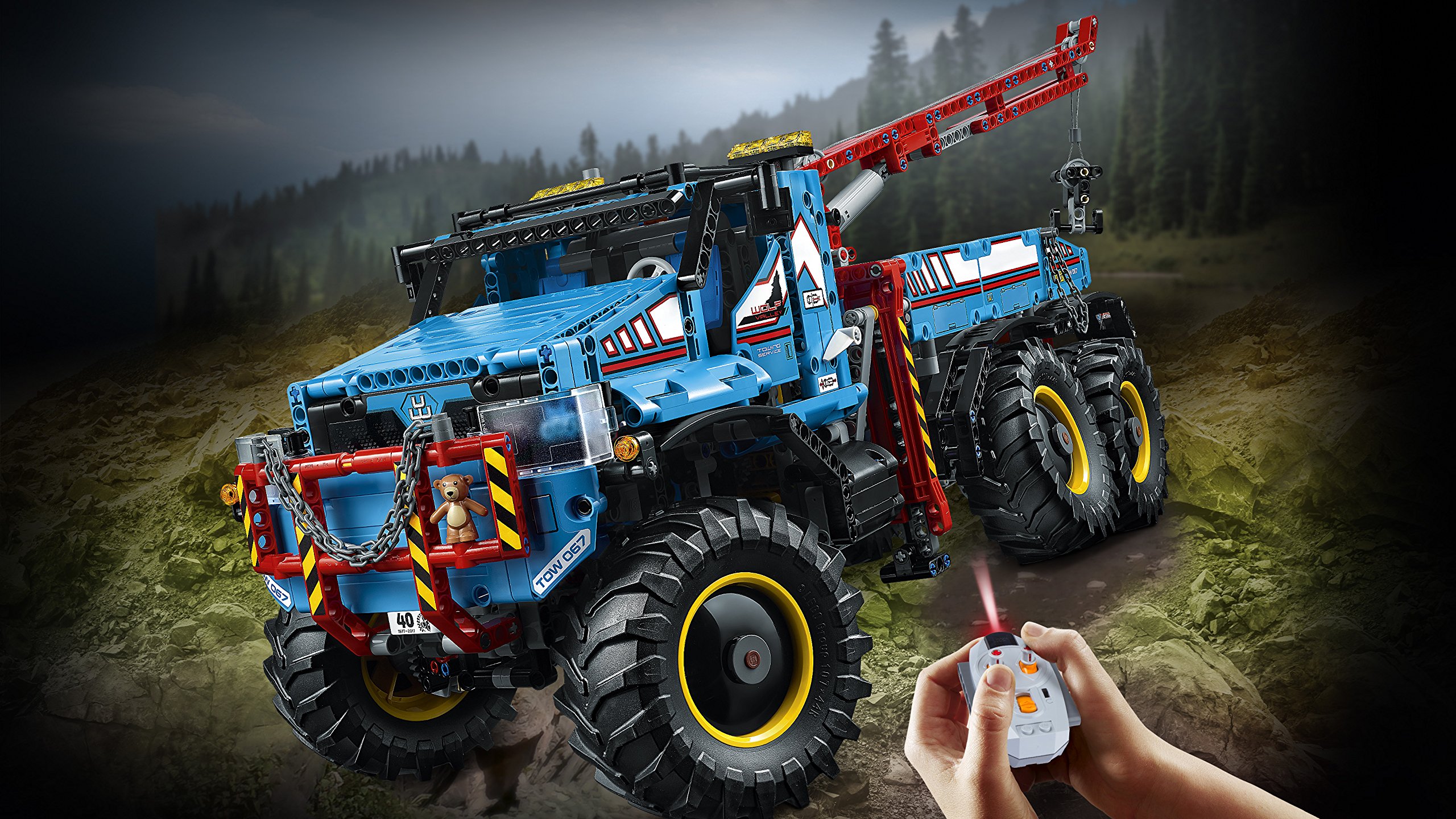Very sturdy, 6 x 6 all terrain Magnum wrecker car with remote control operation, easily cleared any terrain.