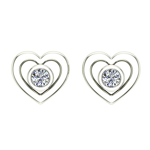 White Gold Diamond Earrings Heart Shape adorned by a beautiful center diamond encircled with gold like a angel halo outline. These diamond earrings come with secured screw-back Posts. Also available in 10K Yellow Gold.