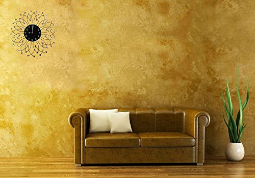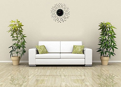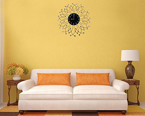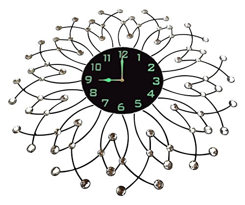 -. Feature : Decorative metal wall clock, diameter 23.5" and black glass dial 9" is easy to view from a distance. / 1 year manufacturer warranty. Silent Non-ticking, high quality quartz battery operated movement. Requires one AA battery (not included). / Aprox weight 6 lbs, Frame & drops are made with black metal which highlights any wall. Please beware of cheap plastic reproductions. / Design for this Decorative metal wall clock is inspired from rain drops with diamond accents / Perfect for Housewarming gift, holiday gift etc.