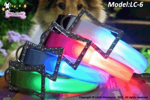 Studio : LAVA Electronics Inc. Publisher : LAVA Electronics Inc. Binding : Misc. Product Description The LC-6 Safety Collar is the newest LED Collar. New Design for the better adjust the collar to fit your pet. 4 different MODES: stay on, quick flash, slow flash and off The bukle is easy to put on and take off from your pet Adjustable strap from 7"---11"(for small size) good for Chihuahua, Pomeranian, Papillon,Dachshund.... and Cats. 11"-15"(for medium size) good for Poodle, Cocker Spaniel, and so on... Water resistant Long battery life (up to 50 hours) Power by 2 *2016 batteries. Made of robust nylon webbing Charms may vary! 0