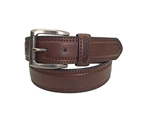 -. Brand : Wolverine -. ClothingSize : 34 -. Department : mens -. Feature : It is recommended you order one size up from your pants size / Wash by hand with damp cloth / Double edge stitching / Sturdy Roller Buckle / Reinforced Belt Holes -. Model : WV76685 -. ProductGroup : Sports -. ProductTypeName : OUTDOOR_RECREATION_PRODUCT -. Size : 34 -. Title : Wolverine Men's Double Topstitched Leather Belt Roller Buckle Brown